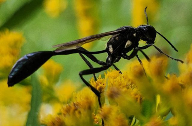 Gold-marked Thread-waisted Wasp (Eremnophila aureonotata)